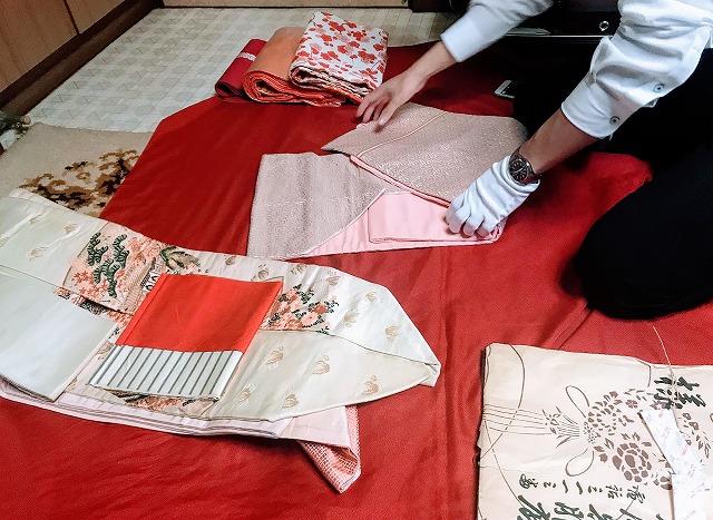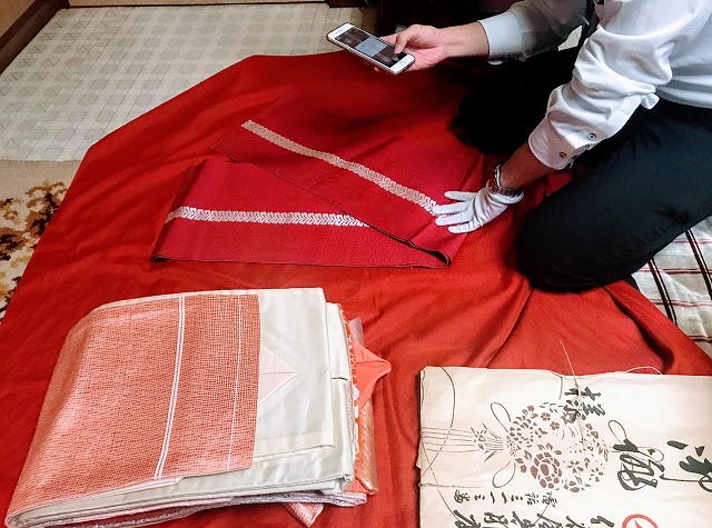 叔母が着物の関係の仕事をされていたそうで、レクチャーを受けたという査定士さんは、若いのに手慣れた手付きで査定していきます。